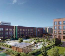 На территории предусмотрены школа, два детских сада, станция скорой помощи. Во дворах - игровые и спортивные площадки, пространства для отдыха и встреч с друзьями. Для активных игр обустроим плейхаб.