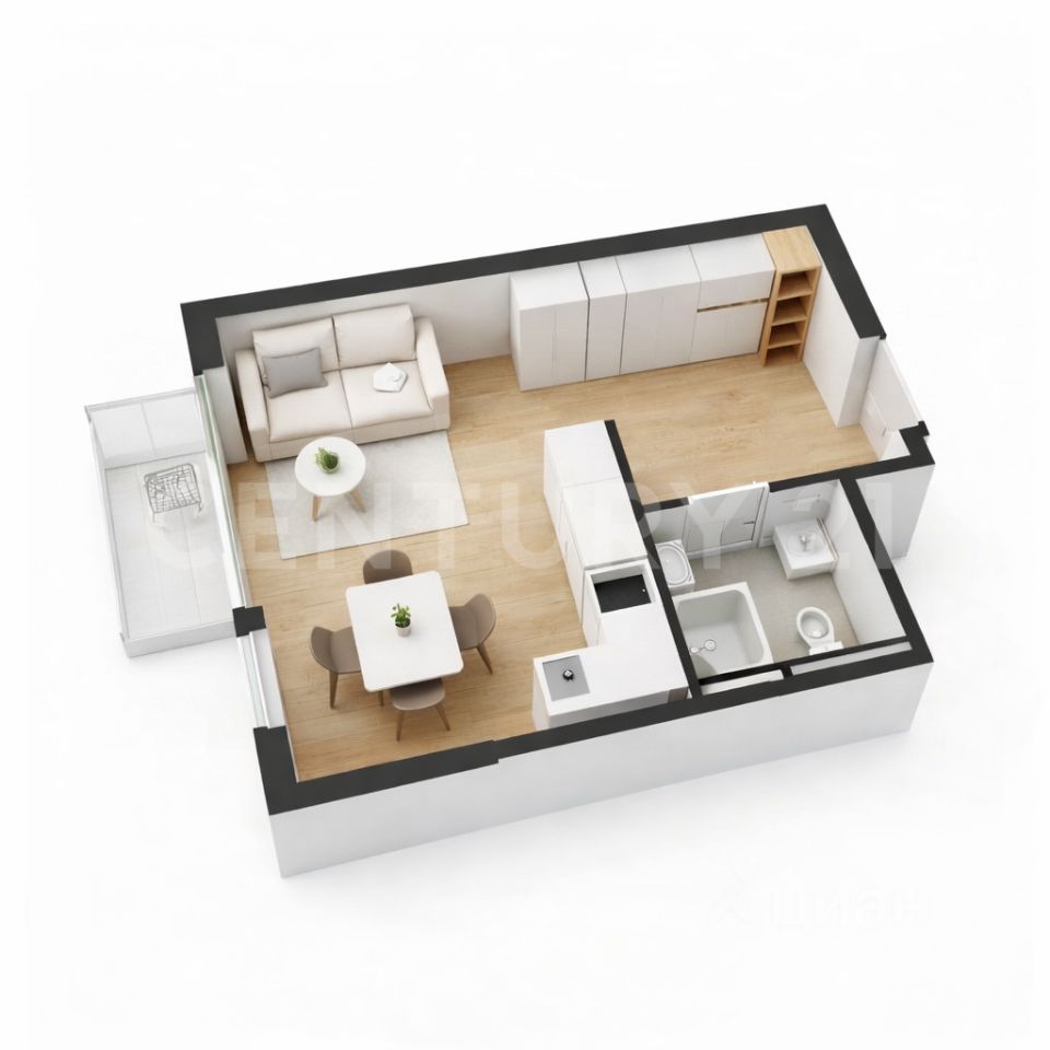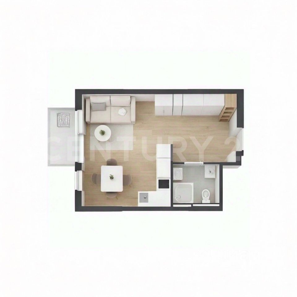 Светлая студия 28,2 м² с полной чистовой отделкой, мебелью, кухонным гарнитуром и кондиционером. Всё устанавливает застройщик. После получения ключей можно сразу жить — дополнительных вложений не требуется. Окна на улицу, на запад.