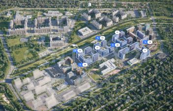 Часть домов уже сдана. На территории работают две школы и три детских сада. Строится поликлиника и торговый центр. На первых этажах жилых домов — магазины, аптеки, кафе.