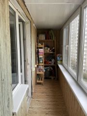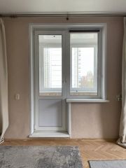 - В комнате 17.7 кв.м. окно и выход на огромную (5 кв м - не входит в указанную площадь) утепленную лоджию,