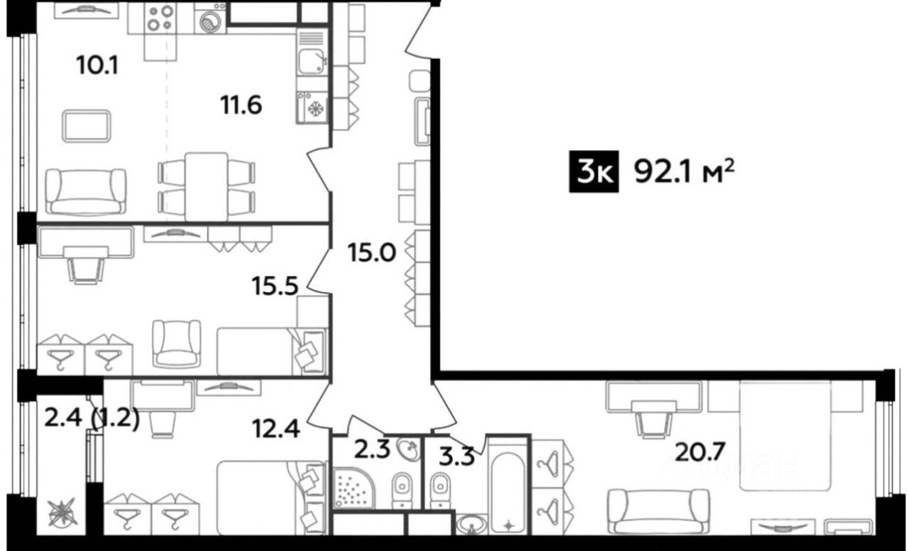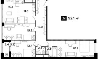92,1 м²