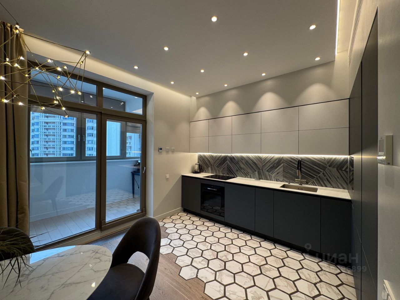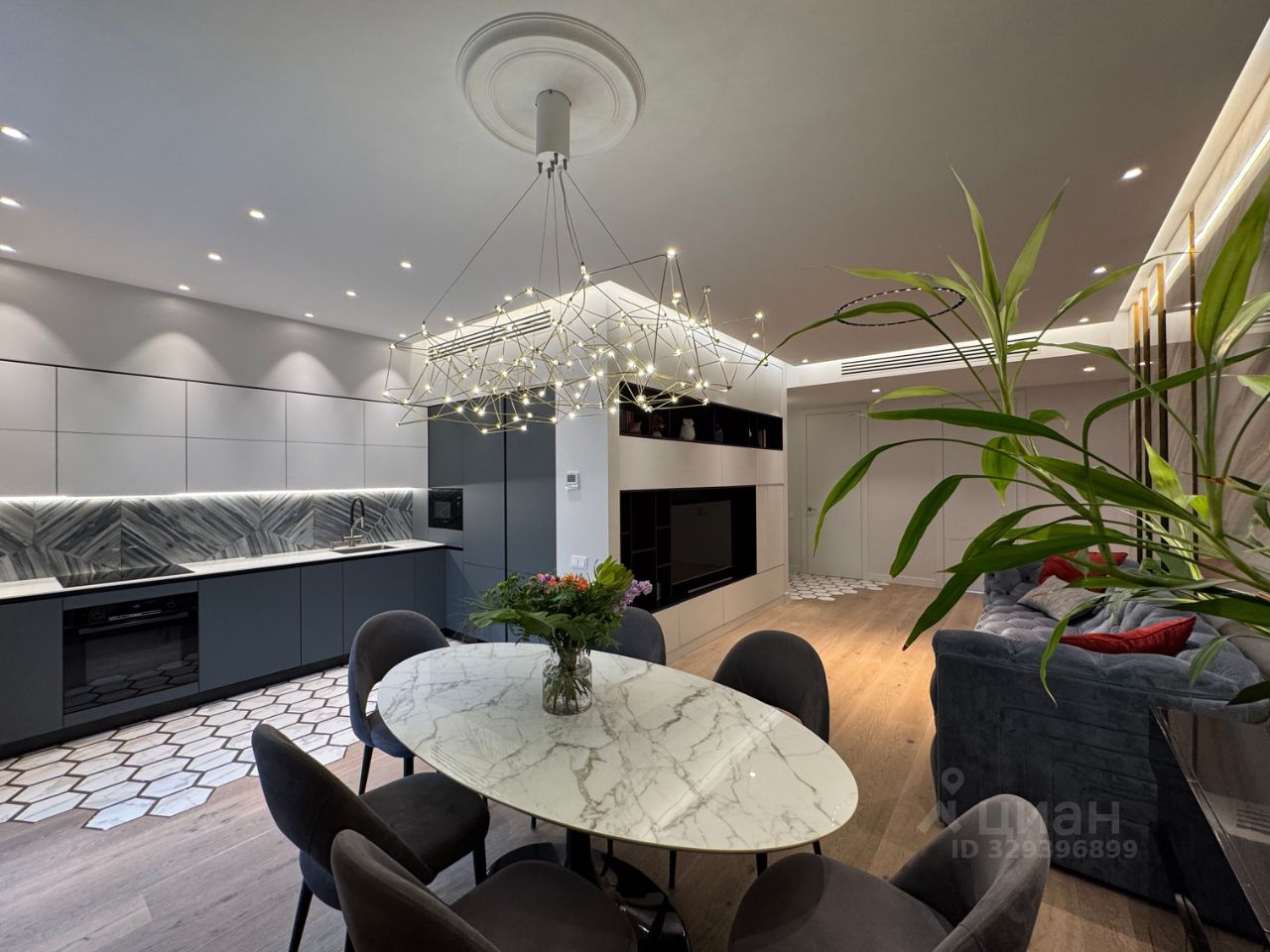 Три спальни (22.26+20.44+17.7 кв.м.), кухня-гостиная (40.57 кв.м.), две гардеробные (5,72+3,13 кв.м.), два санузла, теплая лоджия. Сделан премиальный ремонт: звуко- и гидроизоляция полов, приточно-вытяжная вентиляция, на полу паркетная доска, керамогранит, система теплых полов, совершенно новая кухня. Окна по двор/восток и на улицу/запад, из двух спален видны салюты. Потолки 3 м. Грамотно распланированное пространство. Оптимальное соотношение жилой и общей площадей.