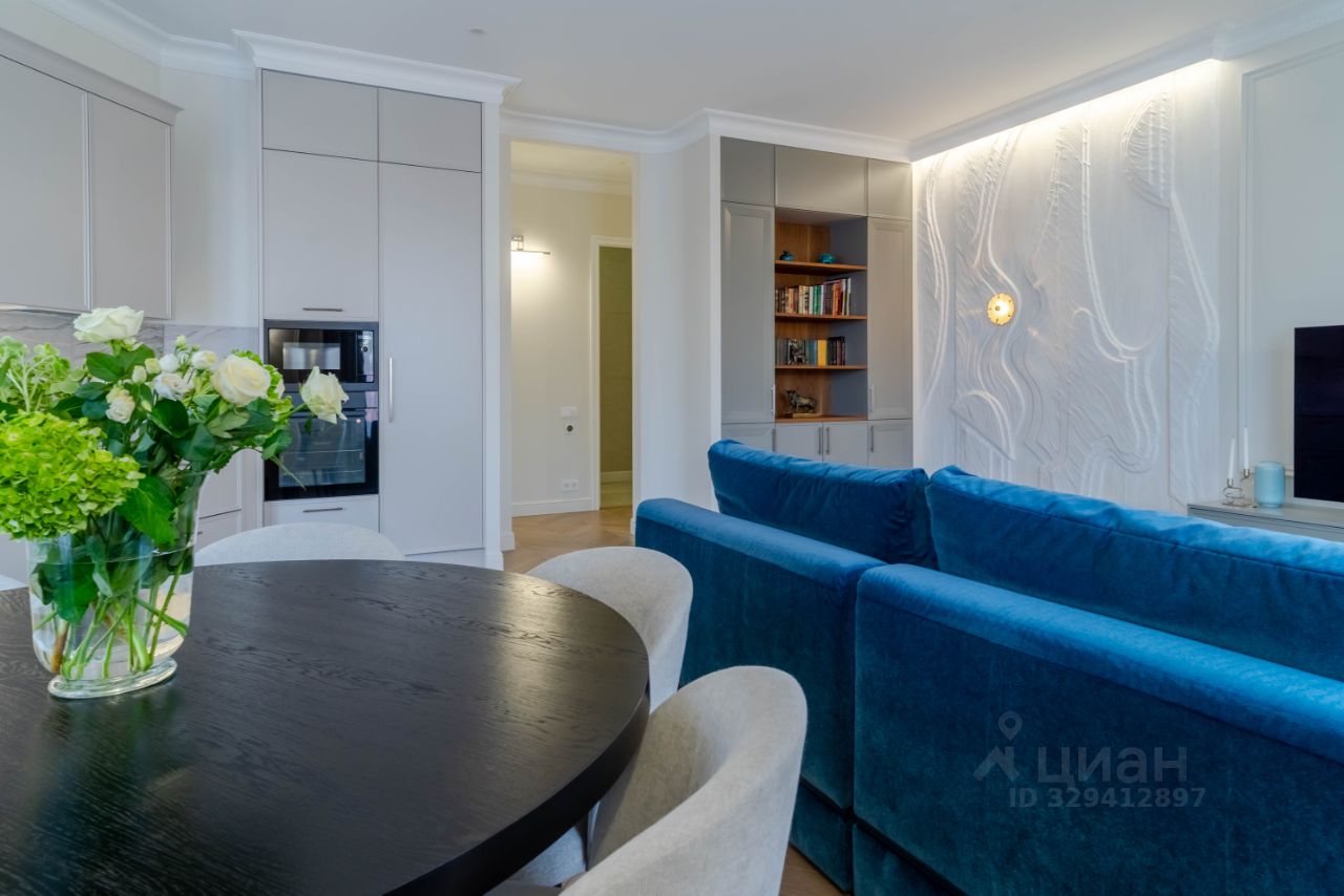 Функциональная планировка: просторная кухня-гостиная, две изолированные спальни, гардеробная, два санузла.