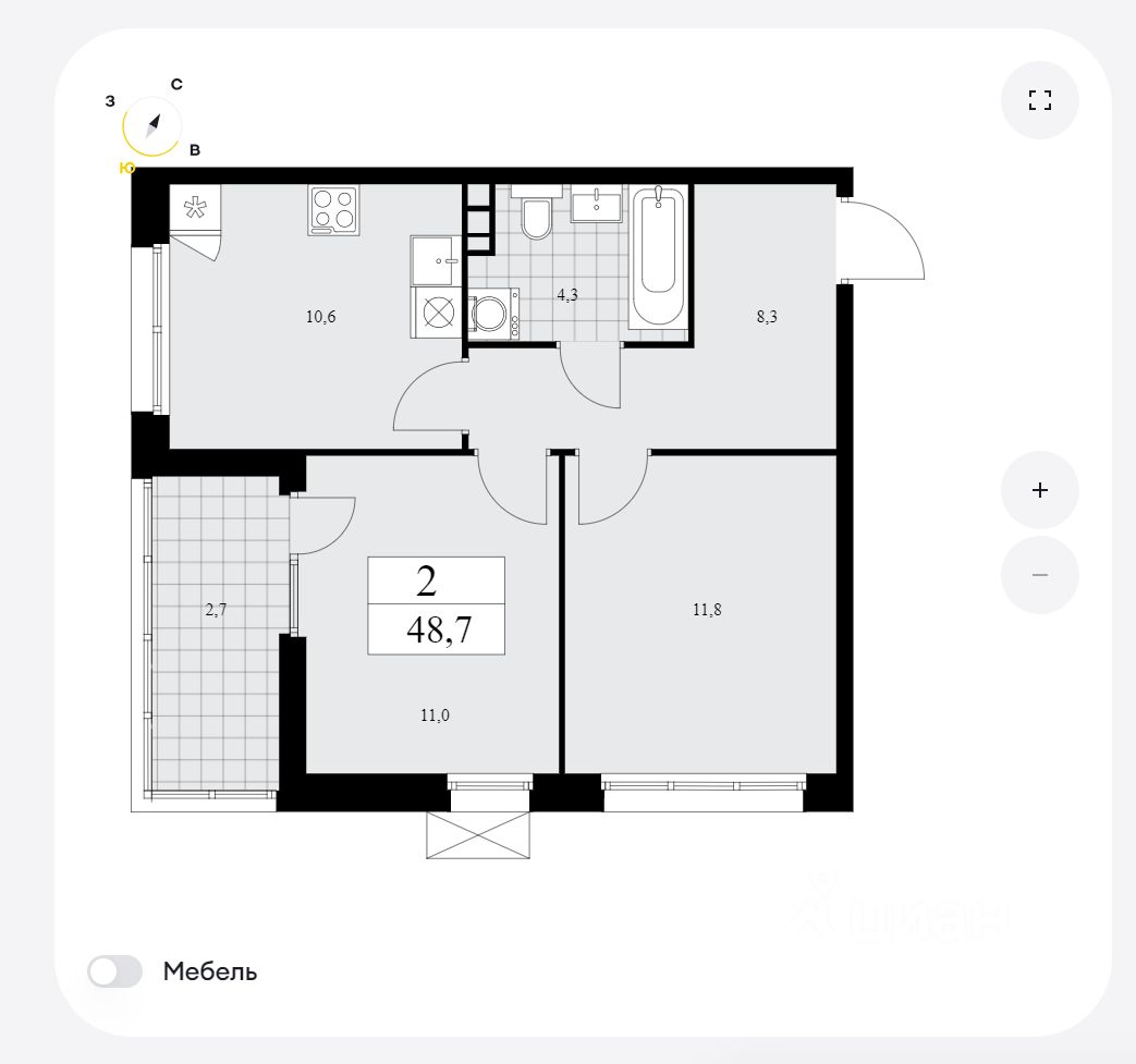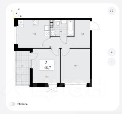 Структура комнат: 2 изолированные комнаты, изолированная кухня, совмещенный сан.узел, застекленная лоджия
