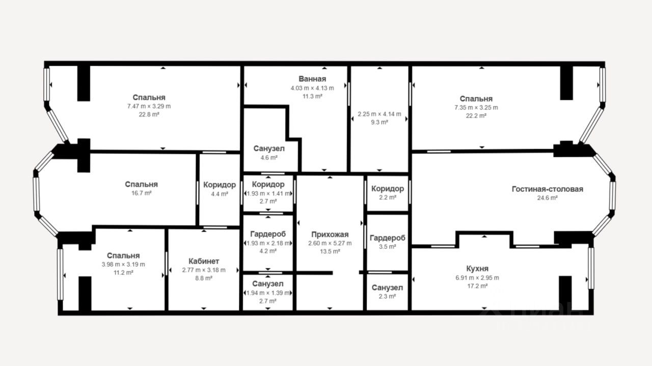 Дизайнерский ремонт на 185,3 кв.м., состояние квартиры соответствует реальным фотографиям в объявлении, видео и рум-туру. В квартире установлена премиальная техника Miele, Liebherr, Samsung. Встроенная кухня и мебель выполнены из высококачественных материалов. Окна изготовлены из массива дерева по индивидуальному заказу. На полу паркет из благородных пород дерева. Пол на кухне и подоконники во всей квартире выполнены из премиального камня.