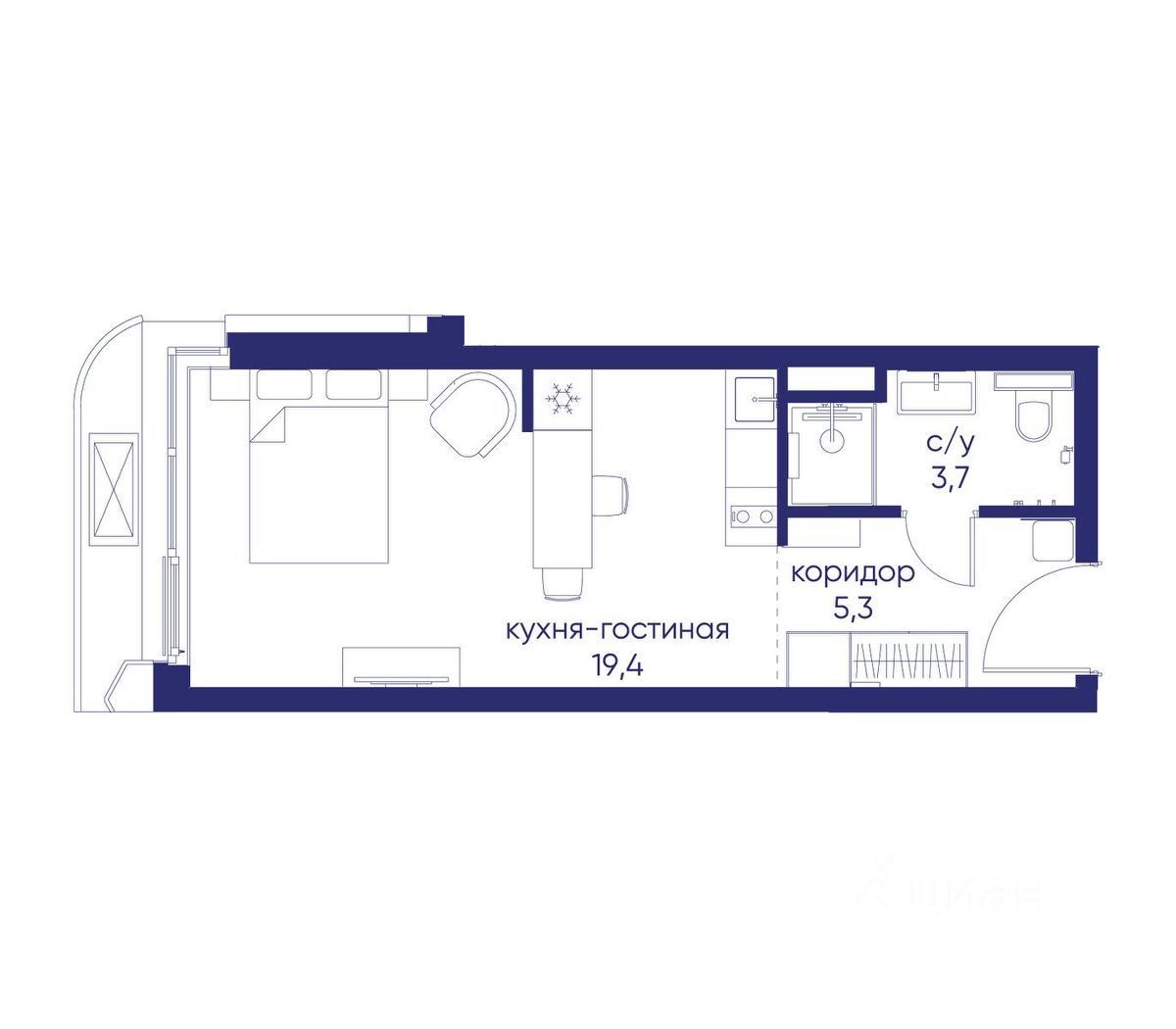 Продаётся квартира от застройщика: общая площадь 28.40 м², жилая 14.40 м², кухня 5.00 м², 2-й этаж, жилой квартал "Остров 14", корпус 1 (секция 1). Срок сдачи: 2 квартал 2029 года.