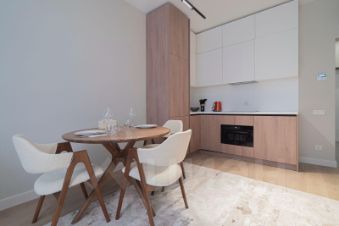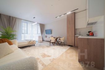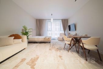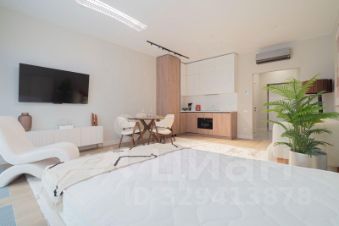 Апартаменты выполнены в дизайнерском стиле, что подчеркивает их современность и комфорт. Просторная студия грамотно зонирована, что позволяет рационально использовать пространство. Санузел совмещенный и оборудован всем необходимым. Панорамные окна выходят на улицу, добавляя свет и уют в интерьер.