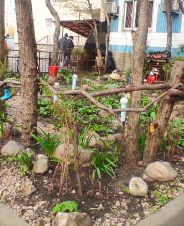 Автотехцентр, две детские площадки ( одна из них с огромными качелями), спортивная площадка, очень интересное оформление придомовой территории.