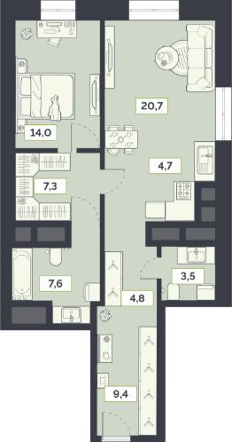 Продаётся 2-комнатная квартира в ЖК "Лайм", секция 1, 16 этаж, 72,0 м²
