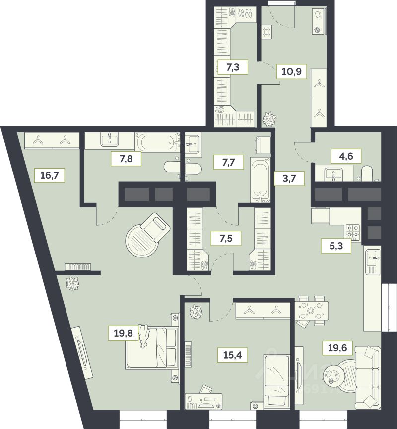 Продаётся 3-комнатная квартира в ЖК "Лайм", секция 2, 8 этаж, 129,3 м²
