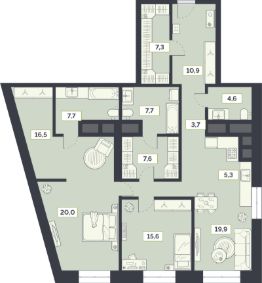 Продаётся 3-комнатная квартира в ЖК "Лайм", секция 2, 18 этаж, 129,8 м²