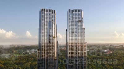 Продаётся 1-комнатная квартира общей площадью 53.40 м² без отделки в ЖК Веер на 28-м этаже 46 этажного дома.