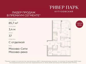 Продается 3-к квартира площадью 85.7 кв.м. на 37-м этаже в жилом комплексе премиум-класса Ривер Парк Кутузовский в Башне Топаз