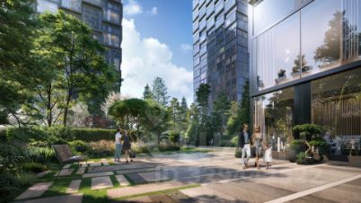 Архитектура от именитого бюро ADM отличается уникальной пластикой фасадов - башни словно парят в воздухе, играя гранями как драгоценные камни. Жилой комплекс состоит из 5-ти небоскребов с приватным парком 2 Га и внешней торговой галереей с открытым доступом.