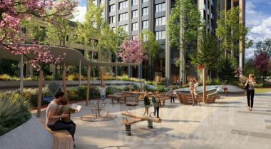 как самостоятельное арт-пространство, состоящее из двух уровней. На нижнем расположится уютный сад, и детские площадки с песочницами и скалодромом, а также подвесные кресла-качели, теннисный стол и турники. На верхнем уровне оборудуют мини-амфитеатр, коворкинг и открытую беседку с навесом.