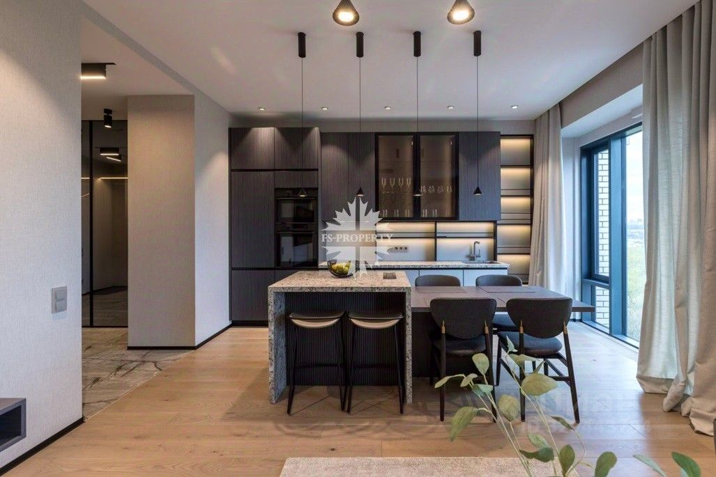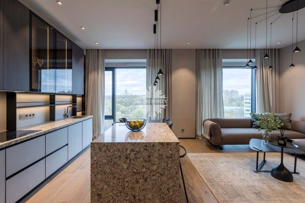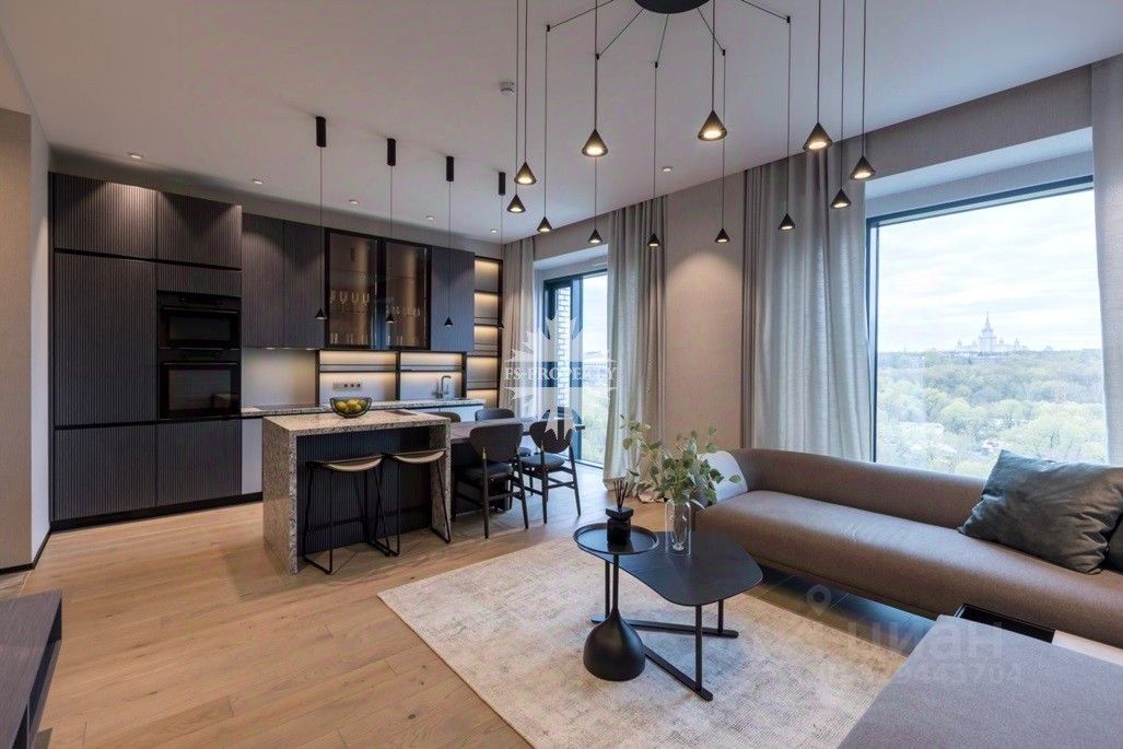Панорамные окна с видом на Лужники. Авторская отделка 2026 года в современном стиле.