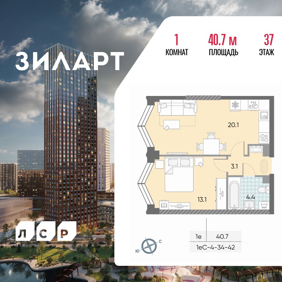 Продается 1-комн. кв-ра площадью 40.70 кв.м на 37 этаже 43 этажного монолитно-кирпичного дома в ЖК "ЗИЛАРТ" от Группа ЛСР. ЗИЛАРТ СПАРК — новый дом бизнес-класса в жилом квартале "ЗИЛАРТ" высотой 150 метров. Он сочетает в себе современную архитектуру, передовые технологии и восхитительные виды на ландшафтный парк "Тюфелева Роща" и бульвар Братьев Весниных. Близкое расположение к музейно-выставочному центру "Коллекция" и концертному залу создает вдохновляющую атмосферу места, где переплетаются жизнь и творчество.