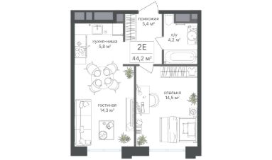 Продаётся 2-к квартира 44,2 кв.м. в ЖК "Михалковский" на 5-м этаже 9 этажного дома.