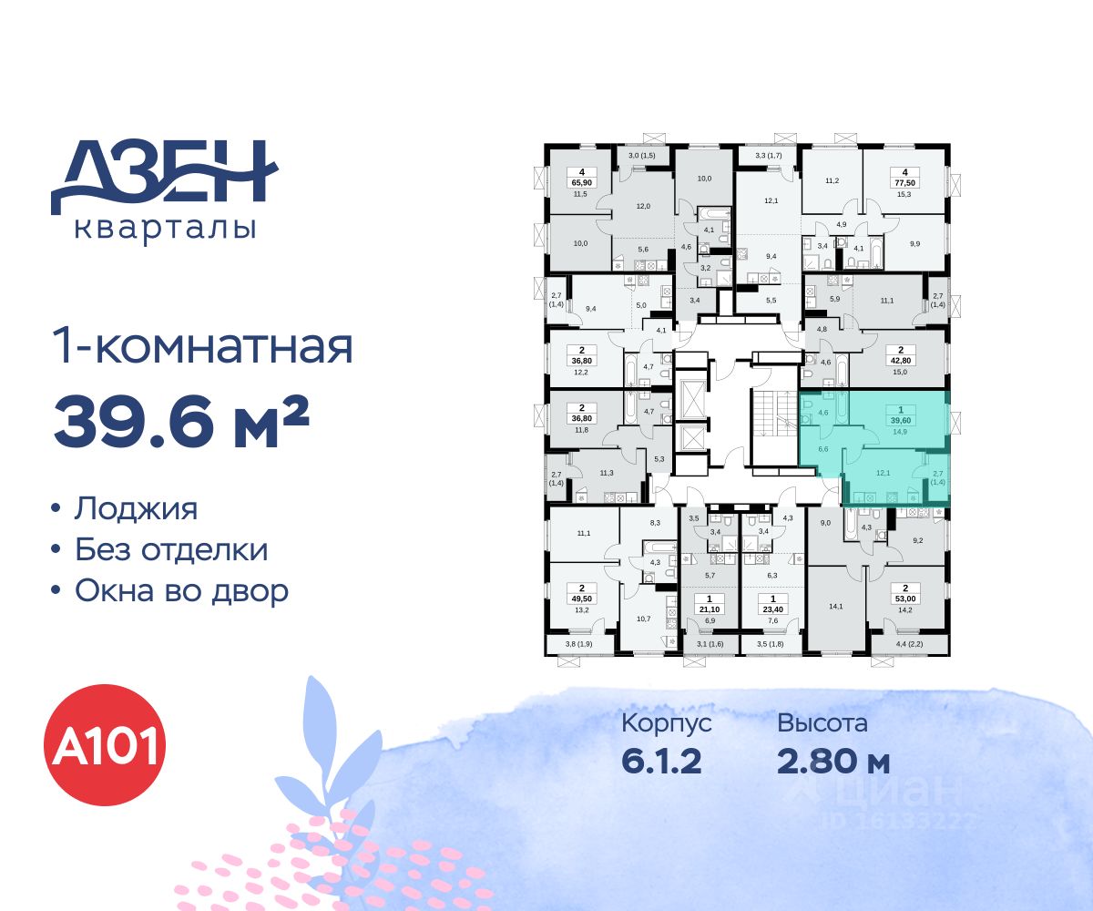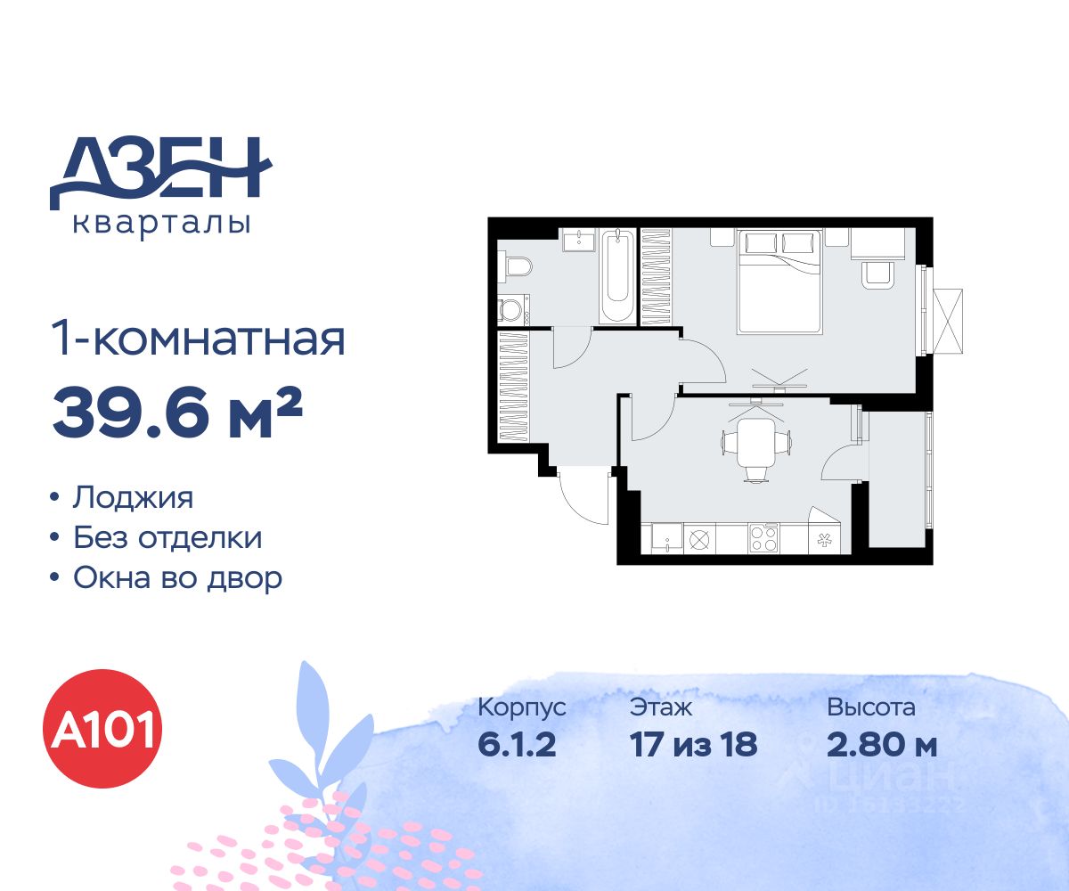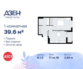 Продается однокомнатная квартира 421 в новостройке ЖК "Дзен-кварталы" по адресу Москва, ТиНАО, Новомосковский АО, Сосенское С/П, жилой комплекс Дзен-кварталы, 6.1.2, район Коммунарка, Новомосковский административный округ, Москва. Общая площадь квартиры - 39.60 кв. м., этаж 17 из 18, секция 6. Тип проекта, по которому построен дом - монолит, компания-застройщик - ООО "А101". Стоимость квартиры - 18064728 Р. Срок сдачи - 2 квартал 2026.