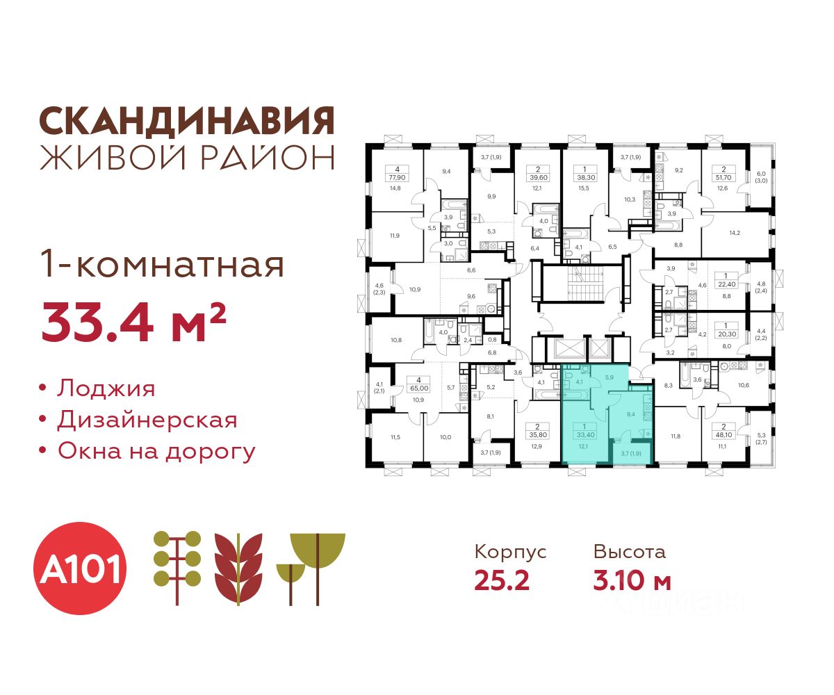 Продается однокомнатная квартира 299 в новостройке Жилой район "Скандинавия" по адресу Москва, ТиНАО, Новомосковский АО, Коммунарка пос., жилой комплекс Скандинавия, 25.2, район Коммунарка, Новомосковский административный округ, Москва. Общая площадь квартиры - 33.40 кв. м., этаж 17 из 17, секция 2. Тип проекта, по которому построен дом - монолит, компания-застройщик - ООО "А101". Стоимость квартиры - 20764112 Р. Срок сдачи - 2 квартал 2026.