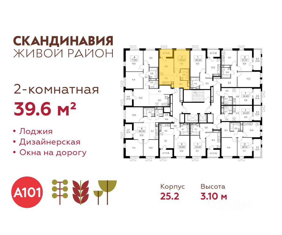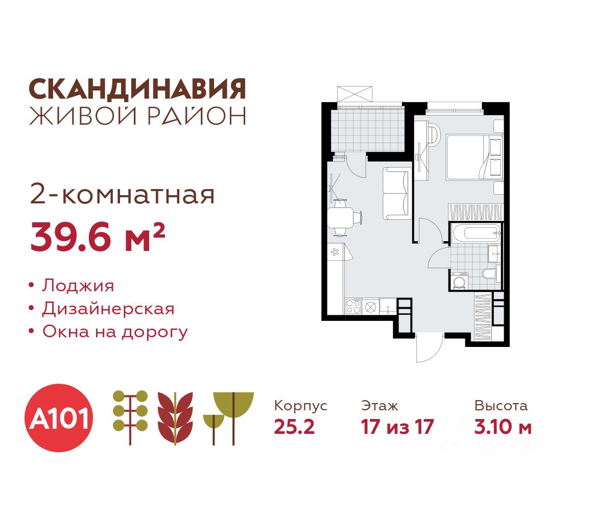 Продается двухкомнатная квартира 303 в новостройке Жилой район "Скандинавия" по адресу Москва, ТиНАО, Новомосковский АО, Коммунарка пос., жилой комплекс Скандинавия, 25.2, район Коммунарка, Новомосковский административный округ, Москва. Общая площадь квартиры - 39.60 кв. м., этаж 17 из 17, секция 2. Тип проекта, по которому построен дом - монолит, компания-застройщик - ООО "А101". Стоимость квартиры - 23743764 Р. Срок сдачи - 2 квартал 2026.
