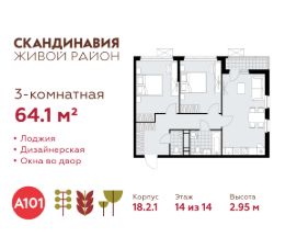 Продается трехкомнатная квартира 129 в новостройке Жилой район "Скандинавия" по адресу Москва, ТиНАО, Новомосковский АО, Коммунарка пос., жилой комплекс Скандинавия, 18.2.1, район Коммунарка, Новомосковский административный округ, Москва. Общая площадь квартиры - 64.10 кв. м., этаж 14 из 14, секция 2. Тип проекта, по которому построен дом - монолит, компания-застройщик - ООО "А101". Стоимость квартиры - 27409160 Р. Срок сдачи - 1 квартал 2027.
