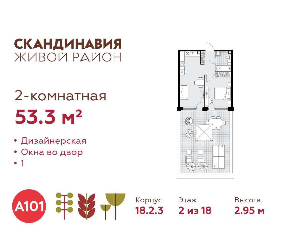 Продается двухкомнатная квартира 280 в новостройке Жилой район "Скандинавия" по адресу Москва, ТиНАО, Новомосковский АО, Коммунарка пос., жилой комплекс Скандинавия, 18.2.3, район Коммунарка, Новомосковский административный округ, Москва. Общая площадь квартиры - 53.30 кв. м., этаж 2 из 18, секция 5. Тип проекта, по которому построен дом - монолит, компания-застройщик - ООО "А101". Стоимость квартиры - 24830278 Р. Срок сдачи - 1 квартал 2027.