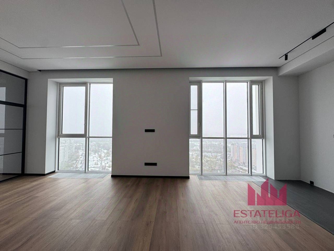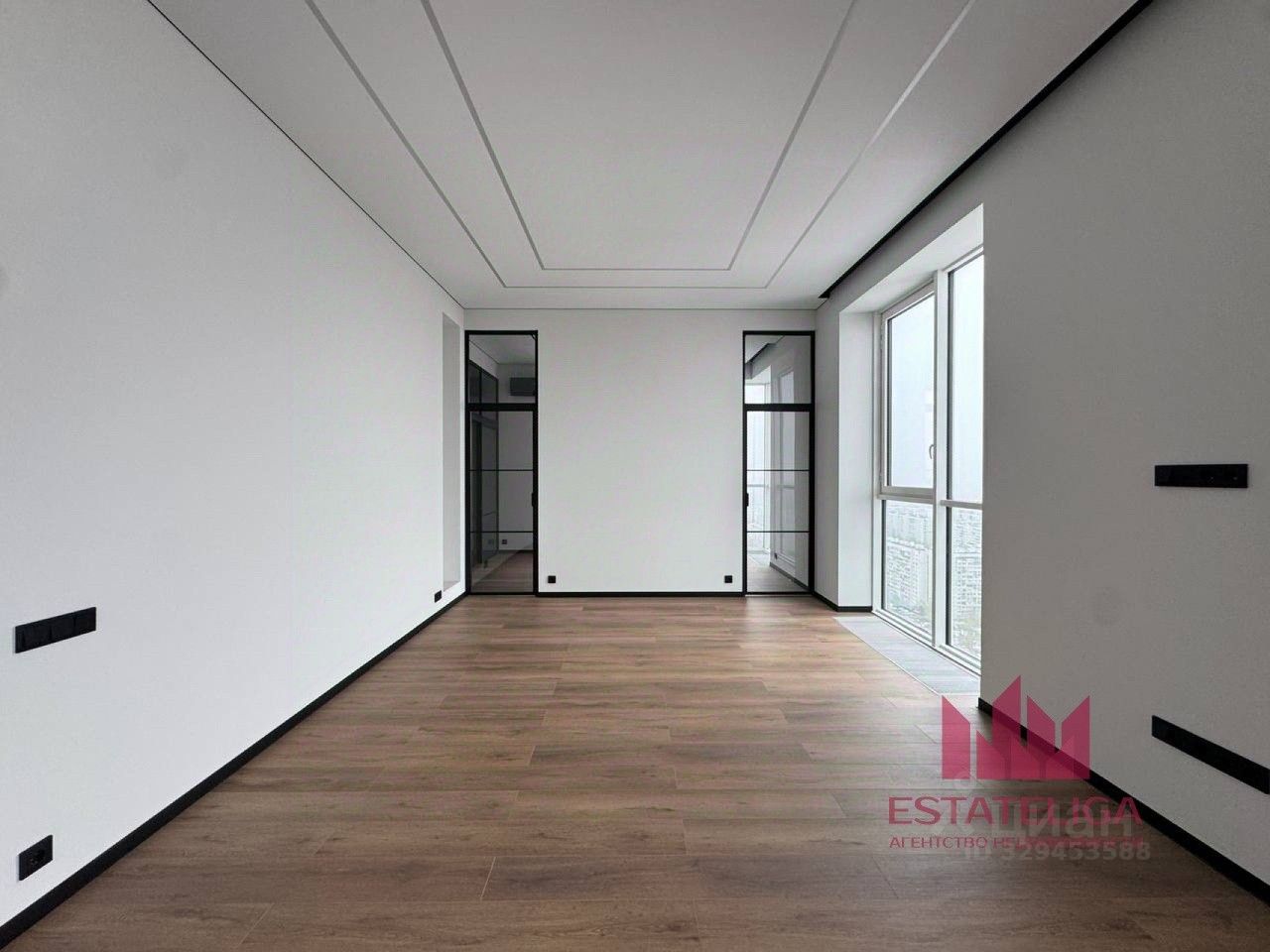 - панорамные окна 3 метра, белый алюминиевый профиль и вид на Сити