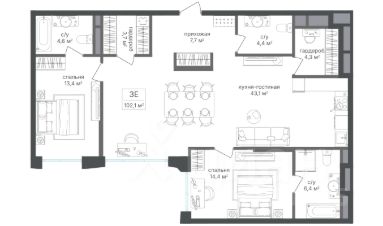 Продается 2-к квартира 102,4 кв.м. в ЖК "Семеновский парк 2" на 9-м этаже 18 этажного дома.