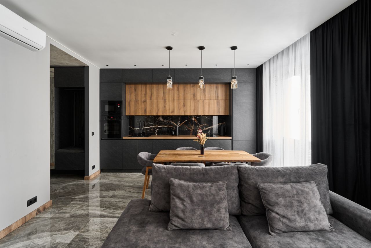 Мебель и техника: Вся мебель изготовлена по индивидуальным проектам и идеально вписана в пространство. Кухня укомплектована надежной встроенной техникой Bosch.