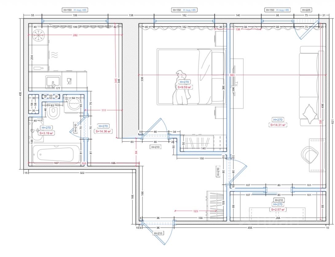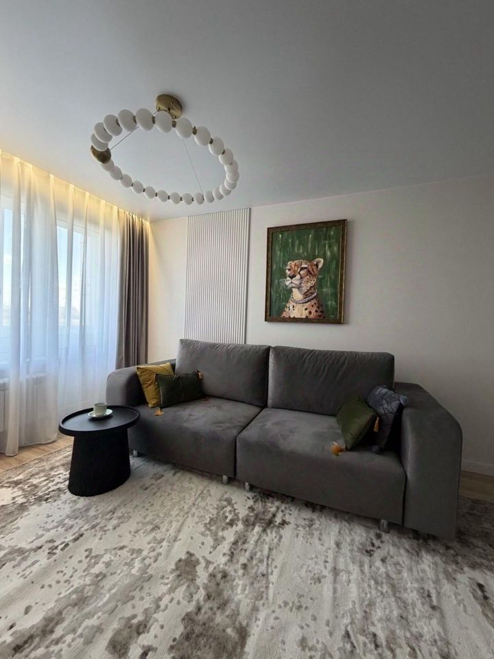 - В зоне гостиной есть удобный, дизайнерский диван, с раскладывающимся механизмом, ТВ зона,зона под стол, большая гардеробная, что очень удобно для проживания и приема гостей