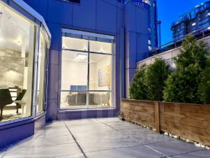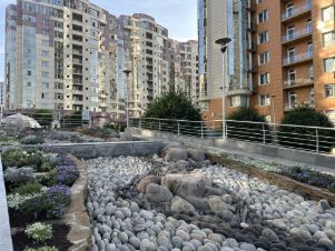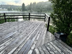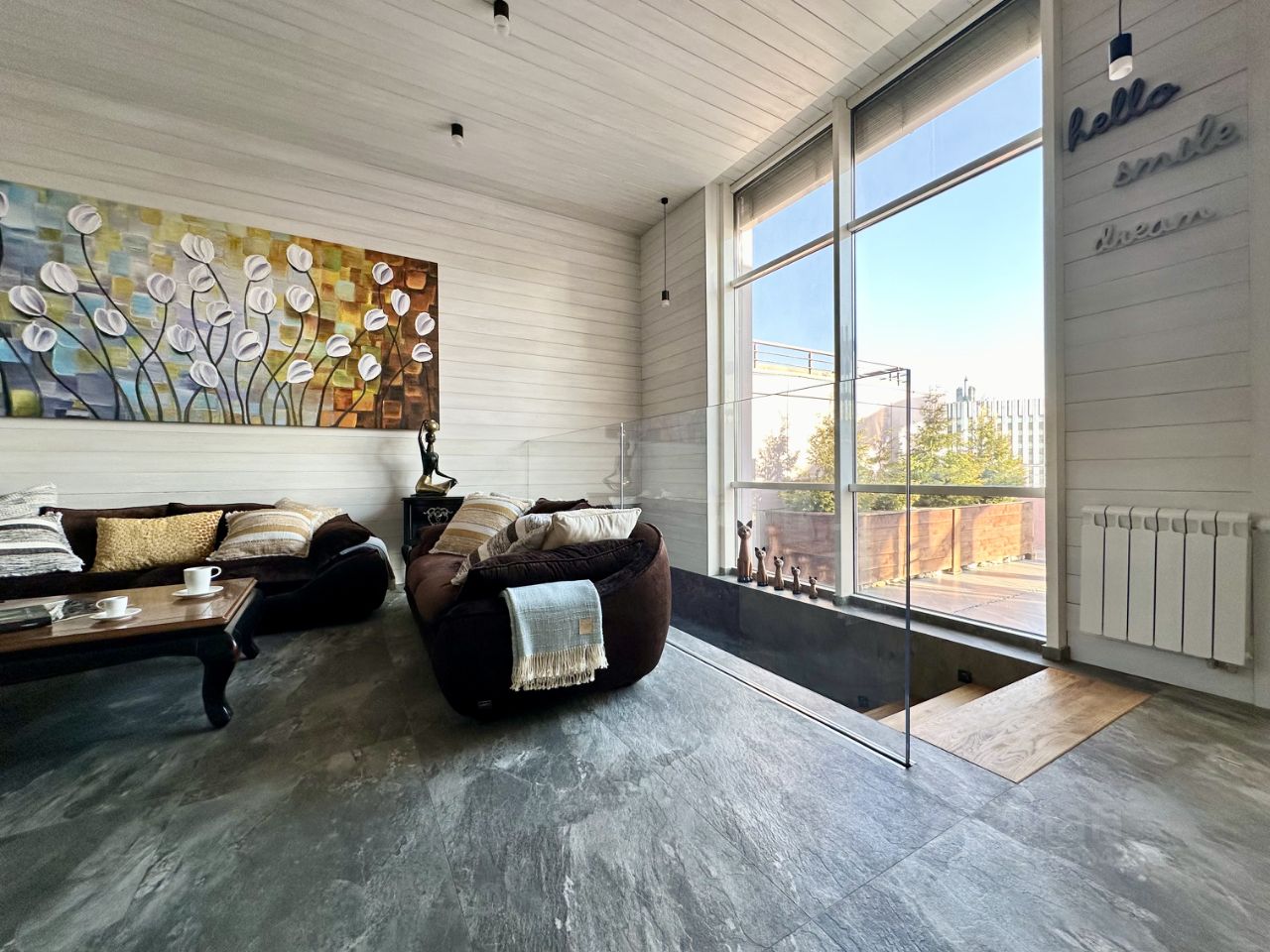 На террасе установлен подогрев пола для таяния снега, автополив для растений в кадках.
