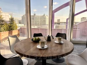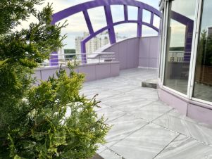 5-ти комнатный пентхаус с большой открытой террасой в жилом комплексе "Миракс Парк". Современный ремонт с использованием экологичных материалов. Высота потолков 3.65 м. Стены и потолок отделаны лиственницей. На полу керамогранит с подогревом и дубовая доска. Установлена канальная система кондиционирования. Фильтры воды для всей квартиры, дополнительная очистка воды обратным осмосом на кухне. Итальянская кухня с гранитной столешницей.