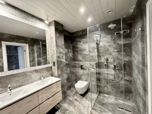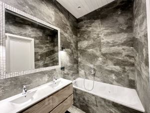 В санузлах установлены ванна и душевая кабина.
