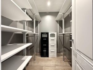 Нижний уровень: две спальни с гардеробными и санузел.
