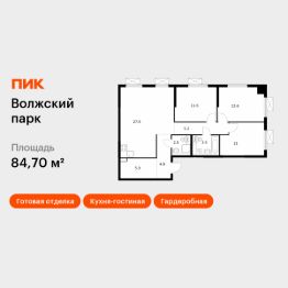 Продаётся 3-комн. квартира площадью 84,7 кв.м на 3 этаже 24 этажного дома (Корпус 6.1, Секция 1) проекта ПИК Волжский парк. Светлый просторный подъезд на уровне земли, функциональная планировка, большие окна, c отделкой.