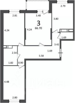 3-комн. кв., 66,7 кв.м