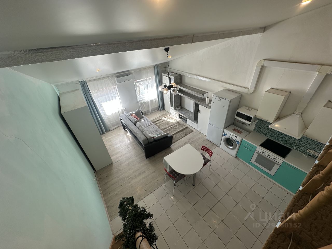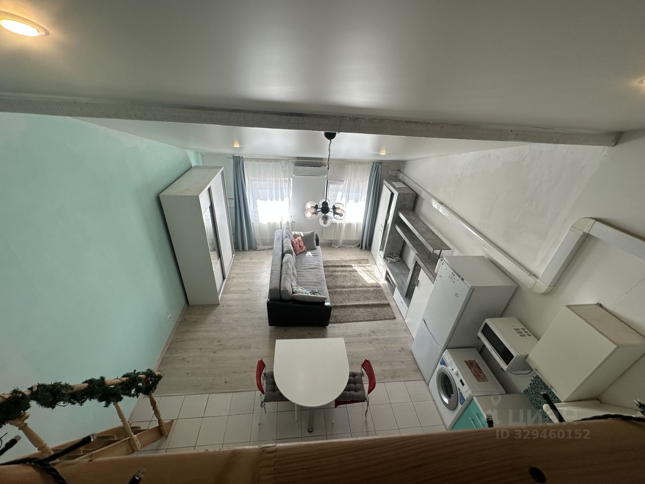 СТУДИЯ (доля 19/100 в праве общей собственности в доме на 6 квартир) двухуровневая 34 кв.м первый этаж, 13,5 кв.м второй этаж. Высокие потолки (более 4 метров), можно сделать окно в крыше. Вид из окон на закат.