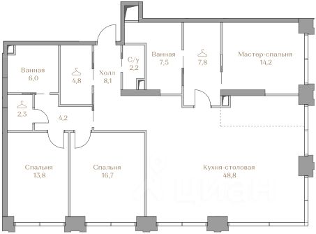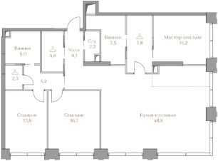 Представляем квартиру в клубном доме Гарден 3 с 3 спальнями площадью 136,4 м2 на 5 этаже.