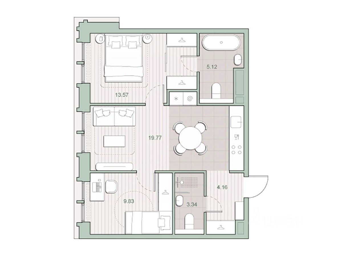 Продаётся двухкомнатная квартира общей площадью 55.79 кв. м. без отделки. Квартира на 5 этаже корпуса 4.2 в жилом комплексе бизнес-класса "Среда на Кутузовском". До метро "Кунцевская" 10 минут пешком.
