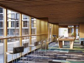 В каждой секции запроектированы дизайнерские лобби, консьерж-сервисом 24/7, колясочными, комнатами для матери и ребёнка и гостевыми санузлами.