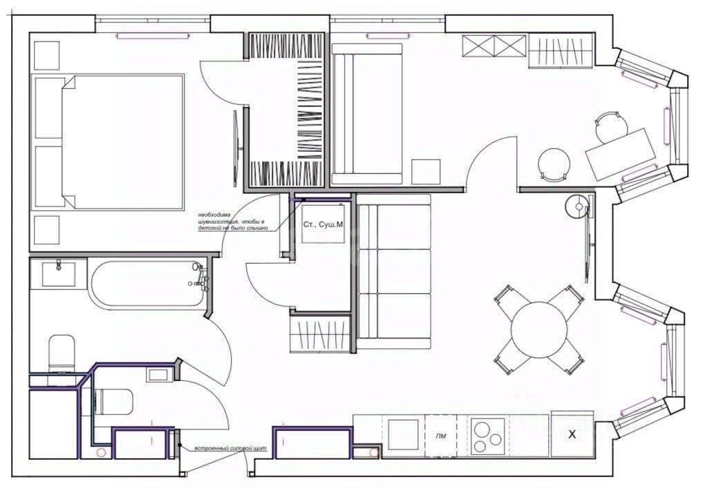 Продуманная евротрешка с дизайнерским ремонтом и полной меблировкой — переезжайте и живите с комфортом. В квартире две отдельные спальни, просторная кухня-гостиная, два санузла, гардеробная в спальне и постирочная с гардеробом (стирально-сушильная машина Haier). Высота потолков — 3 метра, окна выходят во двор и на улицу.
