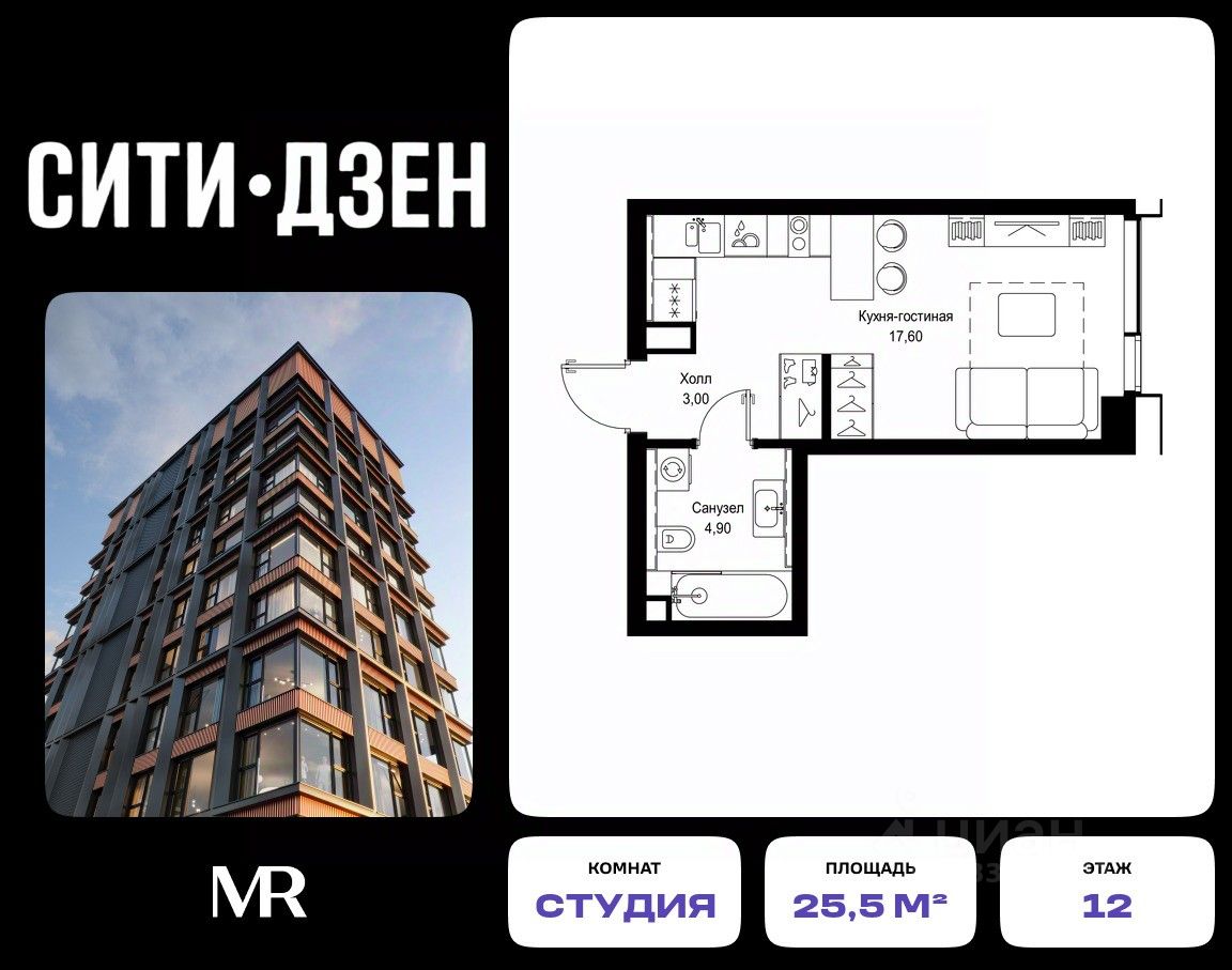 Продается студия от застройщика в жилом мультиквартале СИТИДЗЕН на 12-м этаже в корпусе #3. Общая площадь лота составляет 25.50 м²