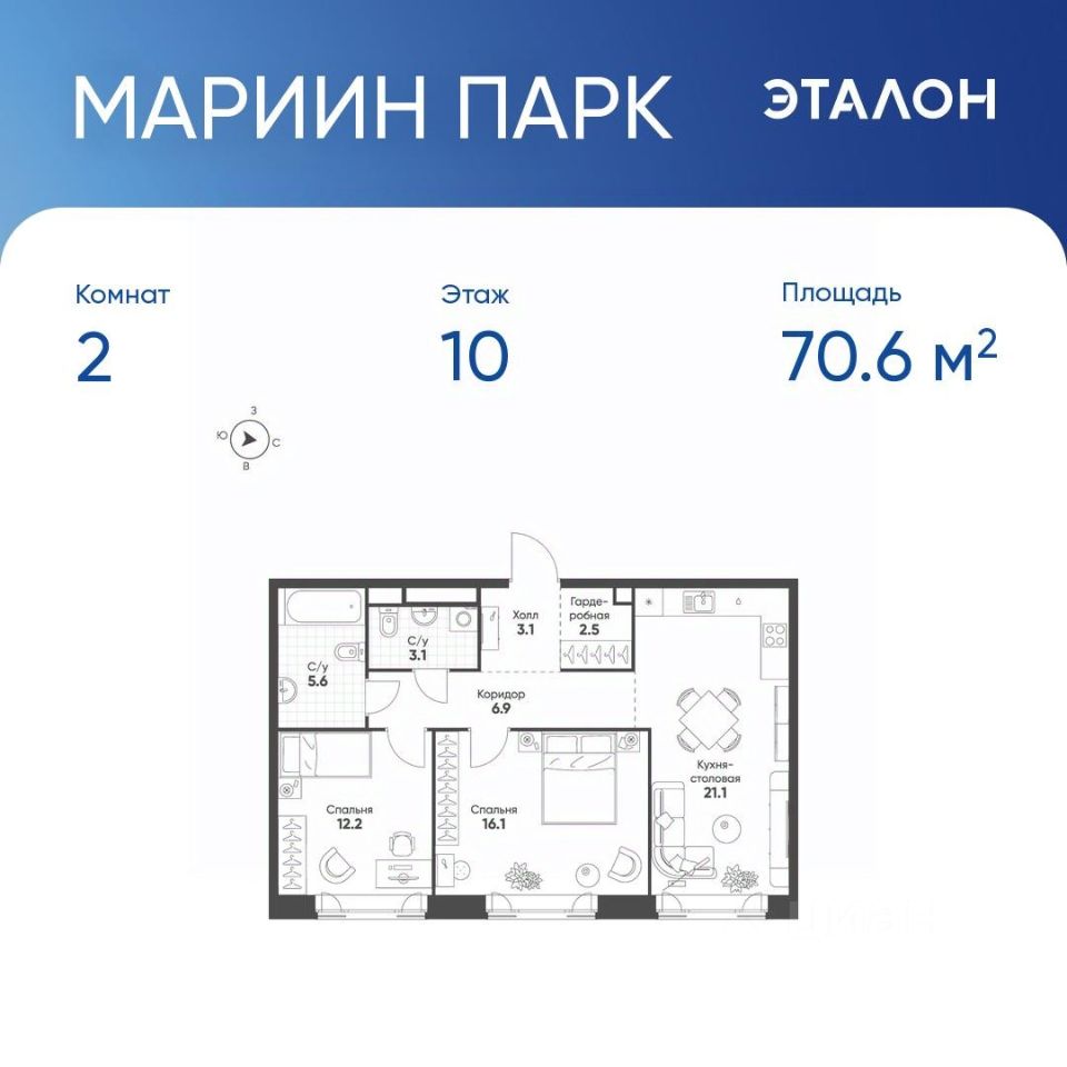 Общая площадь70,6 м²