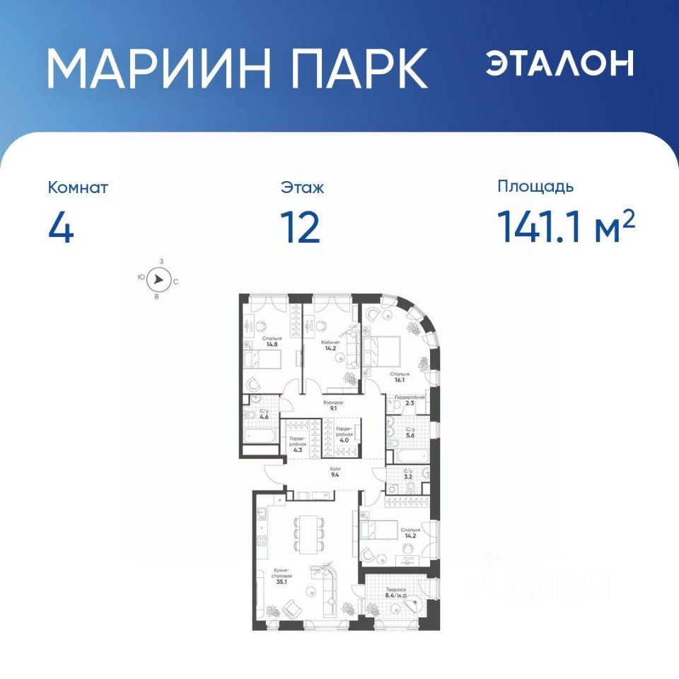 Продается 4-комн. квартира, 141,1 м²