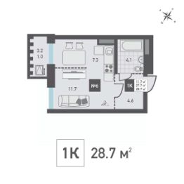 Продаётся 1-комнатная квартира в строящемся доме (Корпус 4), срок сдачи: IV-кв. 2026, общей площадью 28.7 кв.м., на 8 этаже. Жилой дом со встроенными нежилыми помещениями и подземной автостоянкой, расположенный по адресу: г. Москва, внутригородское муниципальное образование Матушкино, г. Зеленоград