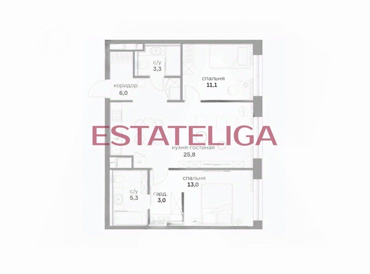 Планировка признана одной из самых удачных в проекте: здесь нет лишних коридоров, каждый квадратный метр используется рационально. Просторная кухня-гостиная площадью 26.5 м² с обеденной зоной становится центром притяжения для всей семьи. Уединённая мастер-спальня 12,5 м² дополнена собственной гардеробной и ванной комнатой. Предусмотрена отдельная детская или гостевая комната, а также гостевой санузел с душевой кабиной.