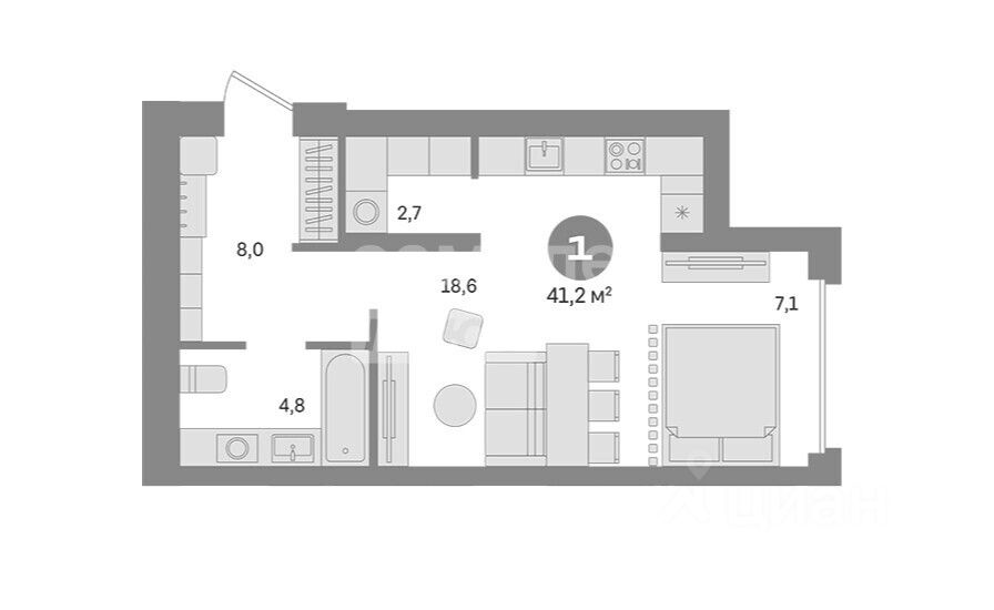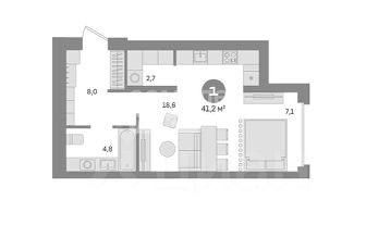 - Площадь: 41,2 м²