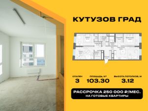 Прямая продажа от девелопера Ingrad. Указана ЦЕНА ПРИ 100% оплате или стандартной ипотеке. Условия покупки в рассрочку с ежемесячным платежом 250 000 руб. уточняйте у девелопера. В квартире: - три спальни, в том числе, мастер-спальня с личной гардеробной и ванной комнатой - просторная кухня-гостиная - вид на природный заказник "Долина реки Сетунь" - потолки 3,1 м "Кутузов Град" - готовые доступные квартиры на престижном Кутузовском проспекте, на первой линии самого большого природного заказника в Москве "Долина реки Сетунь" и в окружении благоустроенных парков. У жителей квартала комфортный и быстрый доступ к ключевым дорожным артериям: Кутузовскому проспекту и его дублёру, МКАД, ТТК. Для здорового образа жизни в квартале работает премиальный фитнес-клуб World Class с 25-метровым бассейном, сауной и хаммамом. Для активностей на свежем воздухе предусмотрены универсальная спортивная площадка и воркаут-зоны. В шаговой доступности уже открыты и функционируют "Азбука вкуса", супермаркеты, кафе, пекарни, салоны красоты и аптеки. В удобных домах созданы красивые и функциональные лобби. Они выполнены в спокойных благородных тонах, в них удобные сквозные подъезды, есть колясочные и гостевые санузлы. "Кутузов Град" расположен в перспективном развивающемся районе. Локация станет ещё более привлекательной после завершения работ по благоустройству природного заказника и реконструкции объекта культурного наследия. В квартале представлены готовые квартиры по выгодной цене: есть возможность выбрать лоты с мастер-спальнями и лоджиями. Доступны варианты с готовой отделкой, а также без отделки - для тех, кто хочет создать свой уникальный интерьер. О жителях и квартале заботится собственная Служба комфорта, которая сохраняет изначальный облик и концепцию домов. Девелопер проекта - Ingrad, который специализируется на строительстве жилых кварталов в Московском регионе. В 2024 году компания Sminex приобрела Ingrad и продолжила работу под двумя брендами.