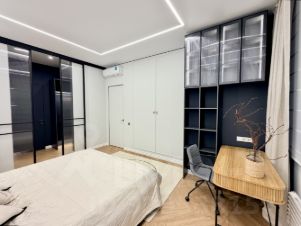 В квартире установлено 2 кондиционера - мульти сплит система. Кухня выполнена из эмали (фасады) на заказ и укомплектована встроенной техникой Bosch: посудомоечная машина, СВЧ, духовой шкаф, и Hansa: холодильник, индукционная варочная поверхность. Установлен измельчитель отходов Borg и фильтры воды. Санузлы оборудованы дополнительными теплыми электрическими полами, датчиками протечек - системой Нептун, проточными водонагревателями и электрическими полотенцесушителями. Столешницы в квартире и подоконники выполнены из искусственного камня. В квартире делался инженерный проект электрики перед монтажом, документы передаются покупателям.